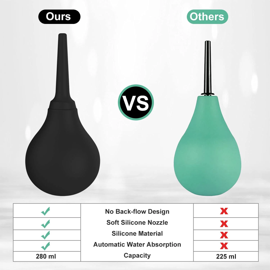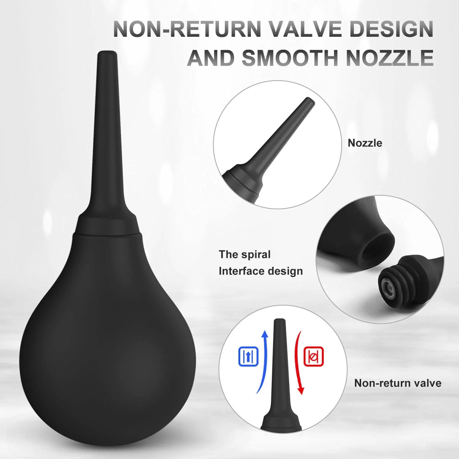 Product DescriptionBrand: LA ABOVERASafe to Use- Squeeze bulb anal douche is soft, durable, and made from soft silicone. It is phthalate-free, latex-free, nonporous, and is a body-safe material. No Back-flow Design-What sets the Anal Douche apart is the one-way valve. This offers a superior cleaning experience without the risk of messy back-flow. Never again worry about little accidents spoiling the mood, instead, allow the silicone enema bulb to give you a superior cleaning experience. A smooth 4.5-inch long nozzle ensures easy and comfortable insertion when used with water-based lubricant. It's also brilliantly flexible, so you can bend and move it into the best cleaning position to suit your body. Large capacity-Holding more than the average amount of water or chosen cleansing fluid, this enema bulb can be filled up to 9.5 oz. (280mL) for a thorough clean, so there's never need for a refill mid-session. Unique Design of Interface-The spiral Interface design of the nozzle is not only leak-proof, but also makes each piece able to quickly snap or screw together, then easily come apart for cleaning.