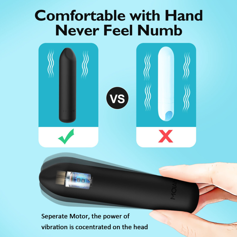 The Moiame mini vibrator bullet vibrator is a range of discreet + petite vibrators that reimagine what a girl sex toy can be. They're seriously good unserious bullet sex stimulator for women, with new tech, new styles, and new ways to love yourself. Created to perfectly blend into your life, you can pop them with your cosmetics, on your nightstand, or in your luggage, so you can bring the fun wherever you go.What are you waiting for?You will never though you'd find a great personal vibrator for so cheap. It is silicone so you can use the clit vibrator in the shower plus its not super loud! Small enough to fit the palm of your hand & discreet enough to put in your purse. It also comes with a usb cord for quick charging in your computer or standard wall charger. The s*xual vibrators for women is a bit longer than an average sized bullet so you won't have trouble reaching certain areas & it will definitely give you the feeling you're looking for in no time! The redesign of the vibrating motor focuses the vibrating to the tip of the bullet bringing you the stimulation where you want it. This allows you to hold the bullet without getting fatigued or numb fingers which makes the experience so much superior.Very quiet but very powerfulYou could use it in your bathroom and no one could even hear it in the next room. You could use it in a public setting and only the person next to you could probably hear it. The g spot has 10 different vibration frequencies and patterns and it is very easy to switch between the two. The button for power or switching patterns is at the very tip of the bullet vibrator where you hold it in your hand so each time you click it to change the frequency it also presses the tip down more which makes things much more interesting.The charging cord is magnetic and the charge lasts for a while. You will be able to use it multiple times over the course of a week before needing to recharge it. If you want something very silent that you can travel with - this is the vibe for you!Your new best friend ladiesAnother thing you will like about it is how easy clean up is. With other adult sex toys there are lots of creases to try to clean around, but with the bullet vibe its smooth so cleaning it is super simple. We have also improved the IPX7 waterproofing so it’s safe in the bathtub, swimming pool or whatever water play you might enjoy. Highly recommend for solo or partner play.【No Feeling of Numb Hands】Many Mini Bullet Vibrators have been known to lead to your hand numbness and even can't hold it comfortably to reach orgasm. We believe in keeping the ingenious internal structure to make the powerful motor is on the head instead of the middle, reducing the vibration of the bottom, which is why we've designed a silicone vibrator that feels more comfortable than ever. Enjoy an extraordinary orgasm without reducing the sensitivity of your vagina【100% WATERPROOF VIBE】This clitoral bullet vibrator with full silicone design, with one piece made tech, is technically protected against water immersion Immersion for 30 minutes at a depth of up to 1 meter allow you to enjoy the nipple stimulator in the bath and hot tub for those sensual nights【Quiet yet Powerful Motor】Amazingly strong clit vibrator, 10 different vibrations are available for your choice. Different stimulator sensation creates multiple vibration teases for your nipples and clitoris, arousing the most pleasurable stimulation. This bullet vibrator is <35 dB, so you will not be noticed when using this quiet vibe in public. It's quiet that no one else from outside the door will know about your secret, and provide a toe-curling orgasm that you won't forget【Body-Safe Silicone Toy】The bullet toy for women is made without any plastic, odorless and soft, Non-toxic, and skin-friendly. The bullet vibrator has a soft tip which looks and feels like a finger. Chic design can be used by her alone, or shared with a partner. If you hand it to your beloved one, and let him tease your nipple, clitoris, vagina and drive you wild. One simple button controls all the pleasure and power you'll need right from your fingertips【Satisfaction Guarantee】G Spot bullet vibrator, small size only 110g easy to carry in the pocket, and discreet design make it one of the best travel vibrators we’ve ever seen. You can easily fit it in your purse or suitcase wherever you go. If you have any questions, please contact with us at once. We promise to give you a satisfactory solution within 12H