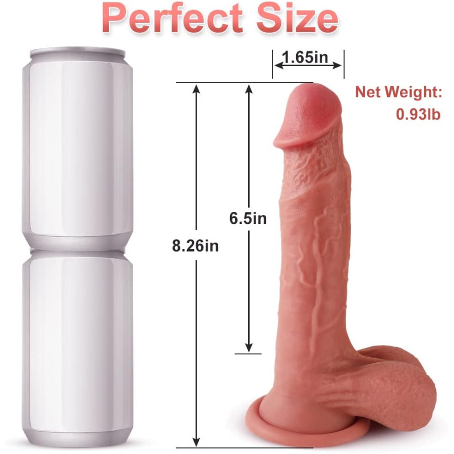About this itemRealistic Dildo: Made of dual layer liquid silicone, imitating a real penis. The outer layer of the dildo is soft, skin-like tissue, while the inner layer is made of a firm material called the corpus cavernosum, which helps maintain the dildo's shape and texture. Featuring a lifelike head, shaft with realistic veins, and wrinkled 3D balls, this dildo is the closest thing to the touch and feel of human skin. It gives this dildo an ultra-realistic appearance and texture.Perfect Size: With a total length of 8.2 inches, a insertable length of 6.5 inches, and a diameter of 1.65 inches. This dildo is molded from a real penis, a perfect replacement for an average-sized man. It can fully satisfy most women's sexual needs, stimulating their G-spot and making it difficult for them to stop, leaving them wanting more.Safe and Soft Silicone Dildo: Made of pure, high-quality liquid silicone, this dildo is body safe, odorless. The dildo has a satisfying curve that is designed to provide maximum pleasure and stimulate all your sensitive spots. Its soft and gentle texture makes it perfect not only for deep throat training, but also for sensual handjobs.Strong Suction Cup Base for Hands-Free Play: The suction cup of this dildo sticks firmly to most smooth surfaces. It can be attached to tables, walls, floors, etc., freeing your hands, allowing you to enjoy multiple angles of sexual pleasure and unlock more sexual positions!Discreet Package: The dildo will be sent to you in an individual and unmarked packaging. No one knows what's in the delivery box, just providing you with the best private protection. If you encounter any problems in the process of using the product, please feel free to contact us.