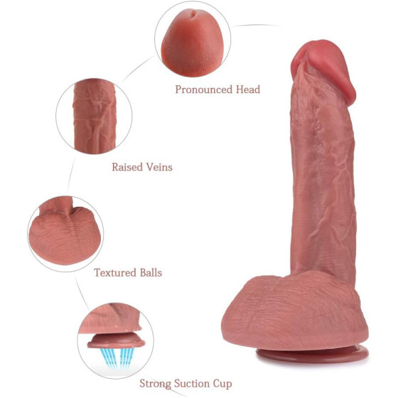 SXOVO 8.27 inch Double Layered Realistic Silicone Dildo for Adults with Hands-Free Suction Cup