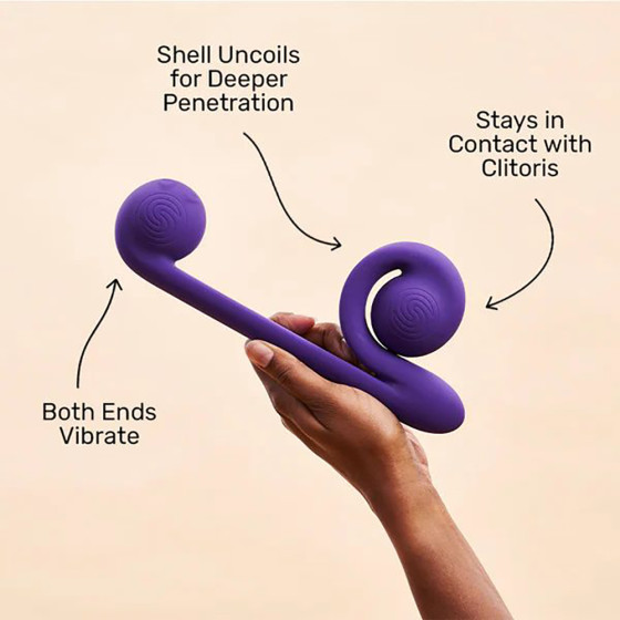 As Seen in Glamour, Vice and Hypebae! For years, companies have tried to create a vibrator that can simultaneously stimulate the vagina and the clitoris. A universal solution to dual stimulation felt like a distant fantasy of ours. Now, we have the SnailVibe. The SnailVibe is the latest innovation in dual stimulation, designed to hit every touchpoint of the vulva!The rigid lower arm is wrapped in smooth and buttery silicone, for true-to life strokes. Watch as the snail's "shell" uncoils as you receive deeper penetration. It's ultra-wide silicone spiral is 2.5cm long, to accommodate diverse and changing body types. With the SnailVibe, you can ensure consistent contact with all your favorite erogenous zones! Navigate through 5 vibration settings and speeds on each arm to find your perfect setting combination. With 600 possible setting combinations, the SnailVibe is truly the vibrator for "anybody."Product FeaturesDynamic Rabbit-Style VibratorBody-Safe Medical Grade Silicone4-Button Interface5 Settings & Speeds in Each Arm600+ Setting CombinationsTotal Length : 9.4inInsertable Length: 1.4in to 5.5inInsertable Width: 1.4inUSB Pinpoint Rechargeable2 Hour Charge1 Hour Run TimeNot Safe for Anal InsertionSplashproof10 Year Manufacturer's WarrantyCareSafe with Water-based lubricant Wash with a Toy Cleaner & Warm Water Rinse