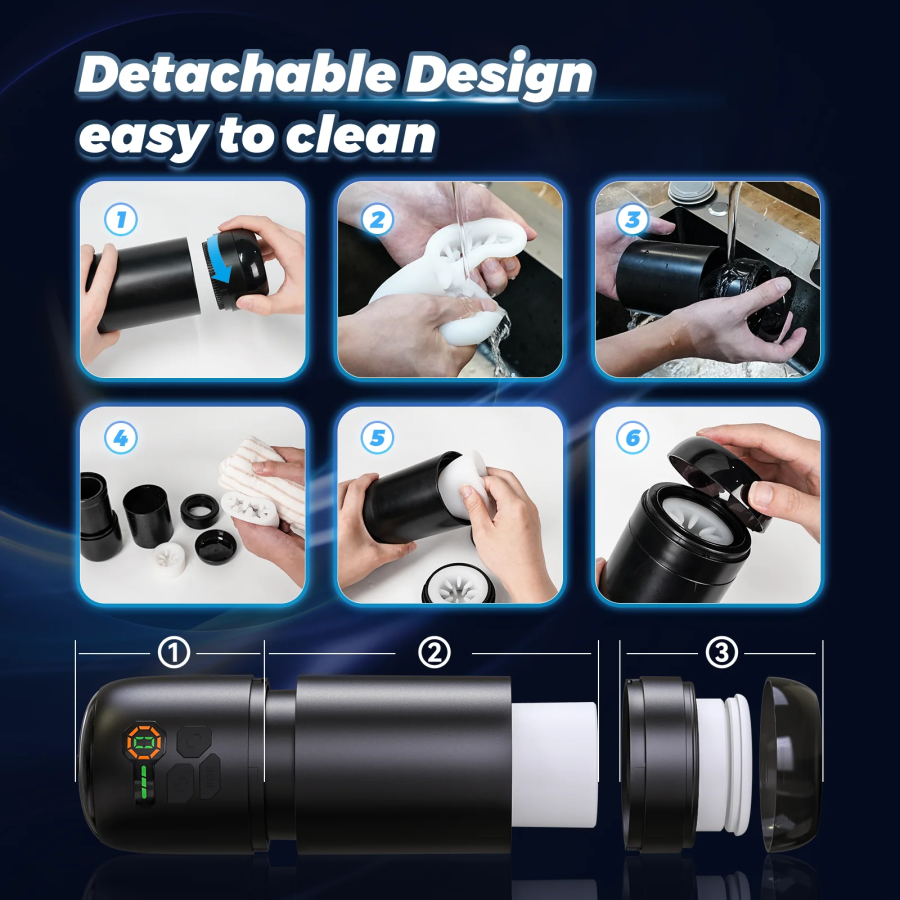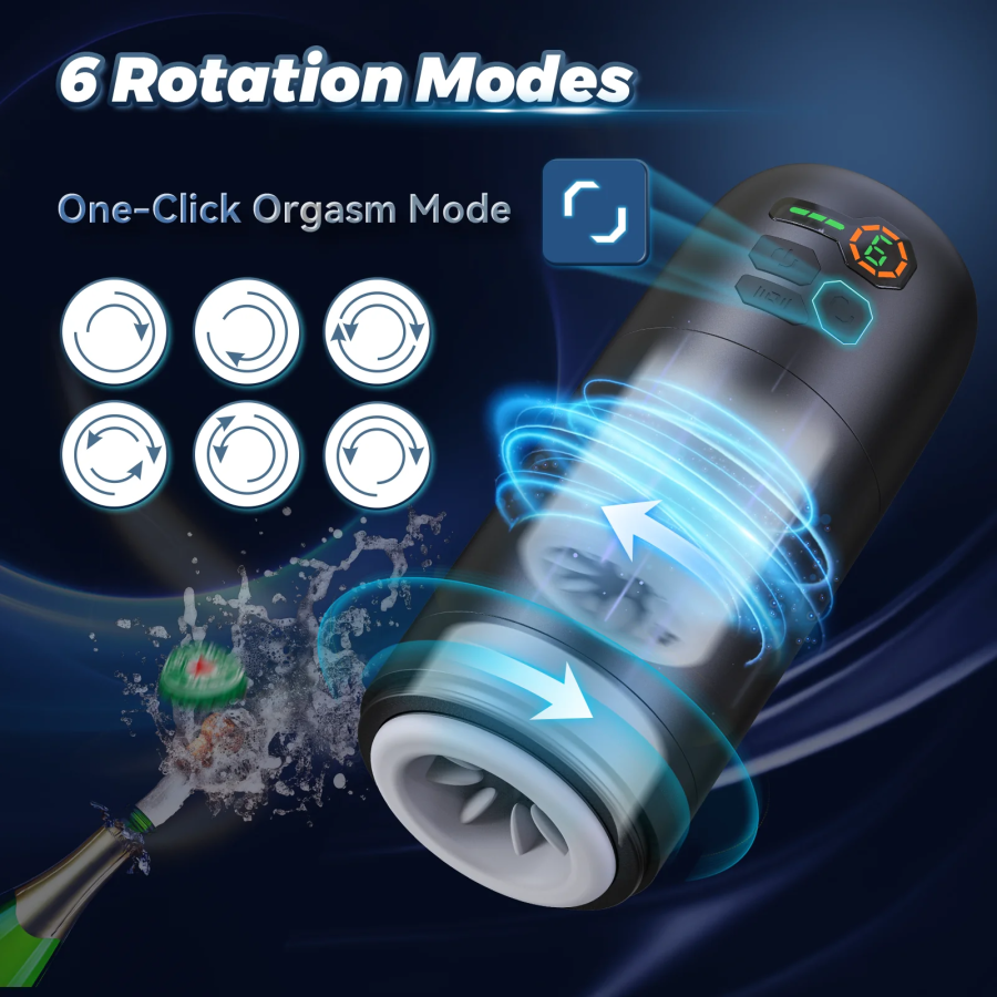 Advanced Bidirectional Up & Down Chamber Rotation——Unlike other rotating masturbators that only rotate in one direction, this mens vibrator combined up chamber and down chamber rotation in different direction technology, creating a maelstrom of blended satisfaction. With two independent noduled chambers, this power-packed and compact automatic stroker can brings a whole new marvelous sexual stimulation.6 Rotation Modes & One-click Orgasm Mode——This male masterbators stroker features 6 spinning patterns and 4 speeds creating a more realistic experience while delivering freshand enhanced stimulation to your penis. Click orgasm mode to experience an intense feeling in a second. A shortcut to extreme pleasure. Of course, you can train your sexual endurance by alternating between normal mode and one-click orgasm mode, depending on how your penis feels.Realistic Detachable Stretchy 3D Soft Texture Sleeve——This male sex toy is made of lifelike TPE material which provides smooth sensation compare with silicone. The super-soft sleeve wraps around the sensitive areas of your cock while hundreds of tiny ticklers tease and please, delivering spine-tingling sensations like real oral sex. High-quality material, comfortable softness and well-designed inner texture are configured just to give you a unique sensation.LED Screen Display Power & Modes——With LED display design, this men's male masterburbator toy power and rotation modes can be seen at a glance, you can choose the pattern you like most. Power level design can remind you to charge your male masterburbater in time, so that it's always ready when you want to use.Easy to Clean & USB Rechargeable——This sex novelties toy has 2 detachable inner sleeve which can be easily taken out from the cup to clean up under the tap. We offer a USB cable for charging. Easy rechargeable with a USB charging cable to meet your needs anytime anywhere. All male masterburbators cups are coming in discreet package. If you have any questions, please CONTACT US by email and we will help you asap!