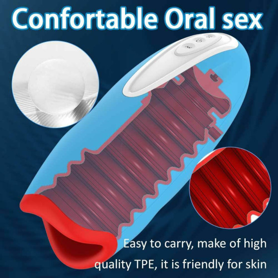 Automatic Heating to 42℃Deep throat experienceMade of the safe Soft Silicone and ABS. Soft touch material feels better than the real female mouth.The humanized handle, easy and convenient to hold.High performance motor, super power.Adjustable speed, 10 kinds of frequency.Portable design,travel aircraft cup.1.5-hour quick USB charge for 2 to 3-hours pleasure Specifications: Material: ABS+TPE Warranty: 3 months Manufacture's Warranty Item Size: 7.4 * 3.2 inchs Color: Blue & Red Package Included: 1 * Oral Masturbation Cup 1 * USB Cable DISCREET & PRIVATE: All orders ship with no product description or invoice.There will be no way of knowing what is inside the package.For international orders, customs description will be marked as clothing gift.Buyers are protected in our Private Listing.Nobody will be able to track your activity. Leave feedback with confidence!