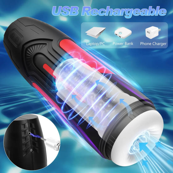 This male sex toy masturbation device adopts a 7.9 inches super long channel and 1.93-inch diameter design to maximize your personal masturbation experience. The body-safe and stretchable TPE ribbed sleeve with a maximum circumference of 6.06 inches are suitable for most men. You will feel the real wrapping feeling through its bumps and nubs inside for thrilling stimulation. There are 7 Vibrations and 5 Suking modes, which can be controlled separately.5 Powerful SuctionsPress the first control button for 3 seconds to activate the suction. You’ll feel gentle air pressure from the deepest part of themasturbator. Enjoy the thrill of steady suction settings. Or keep pressing the control button to explore suction patterns, quick and slow pulsation, waves, and more.7 Intense VibrationPress the vibration button to start up wild vibration. You’ll get thrilling low, medium, and high speeds – plus a rollercoaster of pulsation, waves, and patterns. And all those vibrations totally surround the love tunnel, stimulating you from every angle.100% WaterproofThe lining is completely waterproof, but the case is not. Since the charging port is on the case, the lining can be used anywhere, like a bathroom perfect!TPE Sleeve is Very SoftThis ultimate masturbator features an inner ABS plastic case with TPE sleeve, which accommodate your full shaft compared to other masturbators.Lining with textured ribs and pleasurable shapes, the sleeve not only serves as a normal masturbator, but protects the sleeve from deforming.Perfect SizeThe 7-in insertable tunnel is lined with special ribs that massage and stimulate your head and shaft while you pump away with this male sex toy.How to Disassemble and Install the Device1. Turn the black inner cup anticlockwise and take the black cup out from the product inside.2. Hold the white TPE sleeve and lift it up from the black inner cup.3. Take off the bullet vibrator from the bottom of the TPE sleeve, thenclean the sleeve.4. After cleaning and drying naturally, put the bullet vibrator back to the bottom of the sleeve. Then, put the TPE sleeve back to the black inner cup and press the sleeve to let it subside in place.5. Set the black inner cup into the product then turn clockwise slowly to let it subside in place, and hold the black inner cup and turn clockwise to install steadily.Discreet PackagingThe men masturbator cup will be delivered to you in discreet and unmarked packaging.Charging the Device1.Plug the end of the provided USB cable to the charging port of themasturbator located at the side of the device.2. Plug the USB end into any USB port, either your computer or walladapter. The vibration and suction buttons will flash white.3. Charge the device until the white light stops blinking and remainssolid. The device takes 1.5 hours to be fully charged and lasts about 1hour.4.The product can not be used while charging.