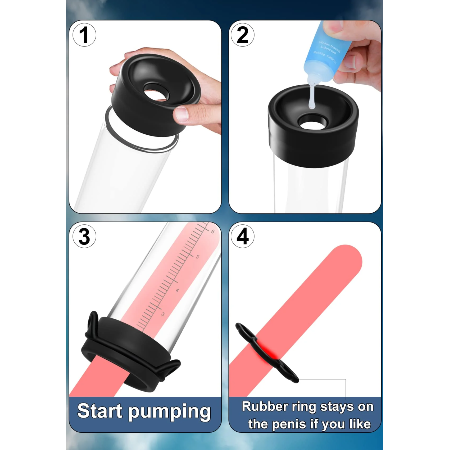 THE WORKING PRINCIPLE OF ENLARGEMENT PUMPWhen the air is pumped out, which makes it easy for you to adapt step by step and find the setting you are most satisfied with. This also ensure that your use is safer and more effective.This will stimulate enlargement until reach the result you want.The larger change can be seen day by day.You can adjust the strength of the pressure through settings, or release the pressure.Everything is under your control.For 15 minutes every day or every other day to increase your size and confidenceWould you like a better performance with your partner?Would you like to get more confidence to show your male power?One Toy Enjoy Different Pleasures Help you to be Stronger Longer and Harder,also enjoy the maximum pleasure:-4 Types of strong suction power-2 black sleeves+crystal masturbation sleeve -Stronger+Longer+Harder-Maximum pleasure4 Powerful Level Help You get Better PerformanceMaximum Girth Size: 7.4 inches.Total with 11.5 inches in length.About this itemThe pens pumps with ring for men has 4 powerful suctions,controlled by easy to use button. The included penis ring and 2 free sleeve ring are the bonus. You can choose comfortable suction and seal O ring with cock ring to prolong your brilliant moment. Maximum Girth Size: 7.4 inch.Total with 11.5 inch in length. You will be able to see your gradual growth when it starts pumping through the measurement with 8 inch long, 2.48-inch wide clear tube, came with silicone base rings.use the quick air release button in case of any sudden interruptions.This pennis vacuum pump enlargement is equipped with double safety protection. 1)press the release button to restore the normal air pressure in the pump if you feel uncomfortable. 2) you can move electricity head with one hand: hold the tube and push the head with your thumb, done!The penis enlargement pump is charged with the included USB cable for 3 hours and the using time is the same. The indicator light flashes while charging and is always on after being fully charged.In order to protect your privacy, we promise to send your adult sex toy for men pennis pump in discreet packaging without any pictures and words about sex toys. No one knows what is inside. Your privacy is safe and sound!