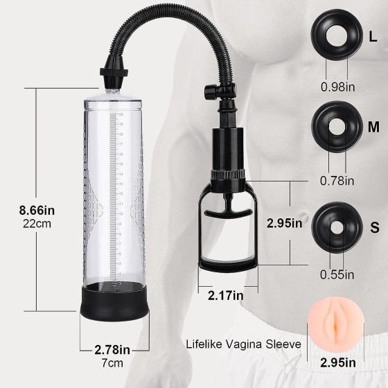 About this itemSafe and healthy, this penis pump is made of durable ABS tube. The sleeves are made of silicone, the powdery feeling on the surface is a care powder for maintaining silicone products, which makes the silicone feel better and more skin-friendly.Easy to use, the cock pump is manual operation, control your own pleasure, when you reach the size you want or feel hard, you can press the release valve for relief when you want to stop. Ergonomic handle and release valve for your comfort and safety.ize you want or feel hard, you can press the release valve for relief when you want to stop. Ergonomic handle and release valve for your comfort and safety.Precise scale of penis enlarger to feel the enlargement precisely. The penis pumps for men vacuum is transparent, so you can clearly see the size of the penis expansion, and the scale on the pump is good for you to let you experience the increased length of the penis and instantly improve your confidence.The erection devices for men with 4 different sizes of sleeves. A realistic vaginal simulation sleeve, 3 different sizes of black silicone sleeves. Put the silicone sleeve on the mouth of the tube, using water-based lubricant will be better.Packaged privacy and shipping ultra-discreet, Keep your privacy in strictest confidence.After-sales service supports a 1-year warranty. Please contact us if you have any questions.