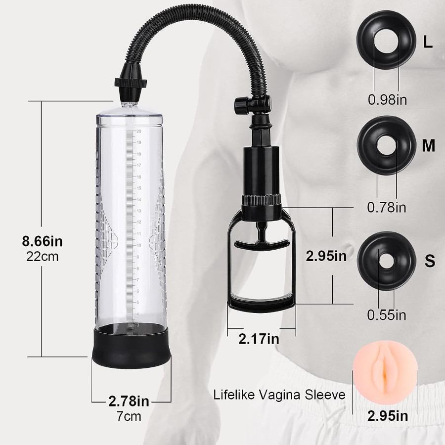 Product DescriptionManual Vacuum Pump Air Pressure DeviceMade of superior medical material safeColor:Black and TransparentSize:8.66"*2.36"Material: ABSType:Handheld Vacuum Air PumpVacuum physical helping erec-tion has no damage or side effect on body.It can effectively make it thicker and longer.Pen-is can be exercised under vacuum pressure,which can help take precautions against premature ejaculations and impotence.Feature in ergonomic handle and release valve for your comfort & safety;silicone and TPR in sleeves,ABS in cylinder,HEALTHY and DURABLEit can be exercised under vacuum pressure,which can help take precautions against premature ejaculations and impotence.Package1pcs x Pen is pump1pcs x Lifelike vagina sleeve,3pcs x Suction sleeves in different sizesProduct detailsIs Discontinued By Manufacturer : NoPackage Dimensions : 11.85 x 5.94 x 3.35 inches; 8.11 OuncesManufacturer : LIVE4COOL