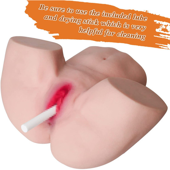 Fantasies come true with this ultra-realistic sex doll!It is a delight to behold with its carefully recreated vulva with delicate, fleshy lips and a tight, puckered anus. There are a few points of stimulation in its internal chambers. The tunnels starts with vertical folds, leading to a section with nubs and suckers, that goes on to a twisting, tightening curve. Past the curve is a section with large protrusions and a deep suction chamber at the end.An Eye Opening Experience!The material is made of safe and non-toxic medical silicone (TPE), which is soft to the touch and feels almost the same as real people. this hands free male masturbator can be stretched repeatedly, and it will return to its original length right away. The silicone is super nice with plenty of ways to please yourself, and it can hold multiple positions because of flexibility.Easy to CleanCaring for this male sex doll is simple and quick. It fits easily in your bathroom sink. When you're done, wash it down with some warm water and liquid soap. Be sure to get the soapy water all the way to the bottom of the orifices, and flip her over so it drains out the opening. Do this at least 3+ times to ensure she is clean. Roll up a paper towel and by pushing it in from the middle longways feed one end all the way down into her orifices. Slowly pull them out while twisting them tighter so they don't rip, do this at least two times until the paper towel comes out dry.Enjoy the Luscious Body and Realistic Details of the Sex Doll: This 9.6 lb lifelike sex doll perfectly replicates the look and feel of a woman’s curvy body. You can see the colors make it look realistic. With the weight of it you can set it down and use it without it moving. Its generous curves, slim waist and two textured orifices are perfect for enjoying a sensual solo moment. You'll love slapping the cheeks as a form of stress relief.How Realistic and Enjoyable the Two Openings Are: This male masturbator has separate two orifices: a 6-inch-long ribbed vagina and a 5.9-inch-long textured anus. The vagina has a delightful inner texture that feels like the ture thing, while the anus has realistic ribbing that will deeply massage your most sensitive area. Both orifices have a flexible diameter to to accommodate your manhood, her only mission is to serve you up orgasms on demand.Soft and Safe Silicone Material: Made of quality silicone that is malleable and does not tear easily, this sex doll is just waiting to be penetrated by your stiff member. You'll love caressing, nibbling, and spanking this delicious bum until the early hours. Our male masturbator does not have a harsh or unpleasant smell. Grab a hold of these charming cheeks as you plunge yourself inside of her tight orifices. You'll feel each intense thrust inside of this affordable sex toy.Easy to Clean, Use and Store: To clean don't worry about destroying the toy by sticking our whole hand inside the canals. If you're worried that you will damage the male masturbators toys, use a straw cleaner or baby bottle cleaning brush to get in there and clean her out. Pat dry with microfiber towel and throw some powder on the sex doll torso and insert the drying stick inside both canals and make sure they are both dry before leaving the doll in storage.Discreet Packaging with Extra Surprises: We care about your privacy and safety. Please use the drying wand so that there is no humidity inside. Plus, the packaging is very discreet. Unmarked sealed box inside an ordinary Amazon box with a secure and protective packaging, so your item won’t get damaged nor can anyone tell what is inside by shaking it.