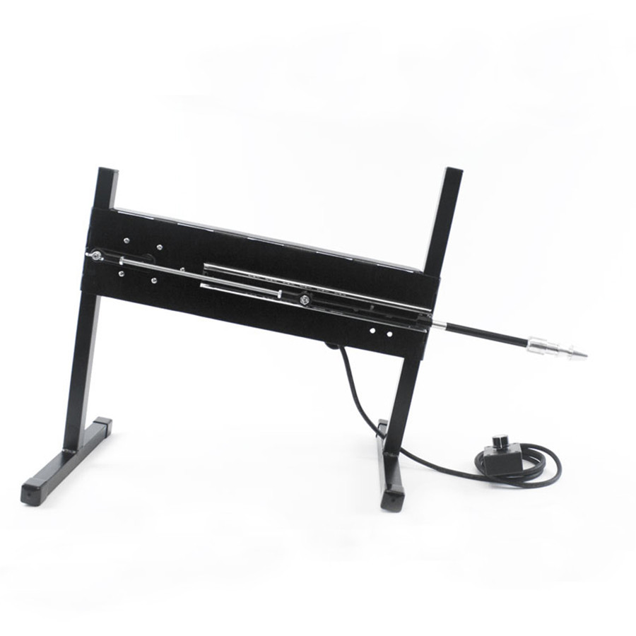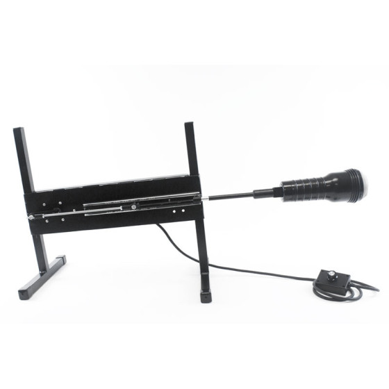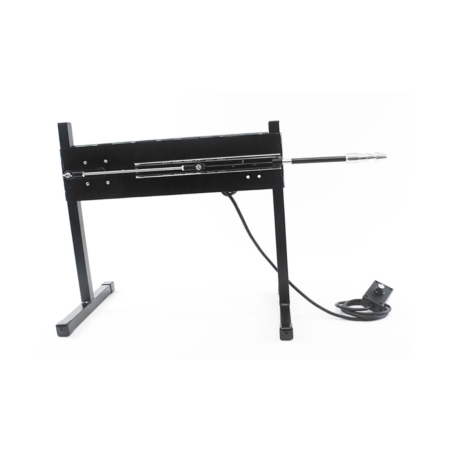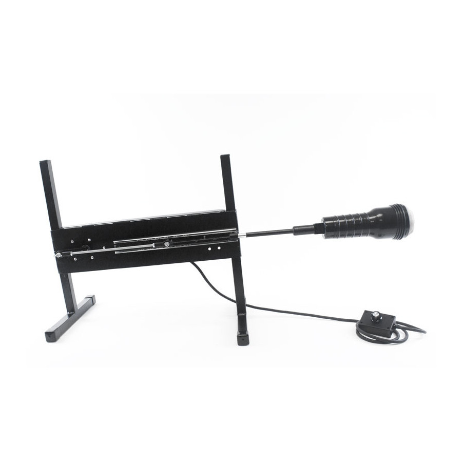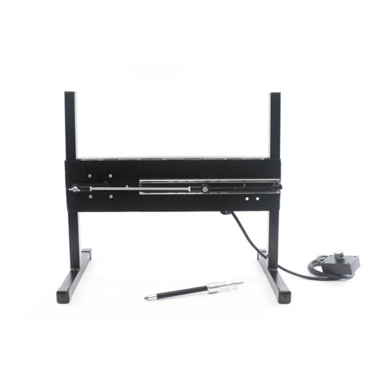 The frame is MIG welded steel with a gloss black powder coat finish for a sleek and durable finish. The machines 3 piece design makes this the perfect fuck machine for traveling. The machine has enough power to probe or plow the tightest holes! Features the KTM exclusive infinite stroke setting from 1 1/2 - 5 1/2 inches. Simply loosen the adjusting knob by hand, reposition to the desired depth of stroke, and retighten the knob.The machine is pictured above with dildos and accessories for demonstration purposes. These are NOT INCLUDED and are sold as optional accessories: 8" Mullato Dildo, 8" Crystal Jellie Dildo, Fleshlight Adapter and the Fleshlight.Technical Specifications:Stroke length; 1 1/2"- 5 1/2" Infinite settingsInfinite speed, 0-250 strokes a minuteHorsepower: 1/16thEstimated Dildo Size: 1" - 2.5" in DiameterPower unit measures 20"x 4"Legs 12" wide x 17" tallExtremely Quiet continuous duty DC gear motorMachine weighs 14 lbs.Electrical requirement 110v 60Hz220v 50Hz available at no charge (Learn More) High Quality product Made in the United States of AmericaStandard Features:Gloss black Powder Coat finishMIG welded steel frame9" Vac-u-Lock Adapter included6 ft hand held speed adjuster6 foot power cord for your country (No Adapters Needed)IronClad Lifetime WarrantyOptional Accessories:Vac-u-Lock DildosMan Milking kitUniversal dildo holderDildo DoublerStorage BagAll Fucking Machine Accessories
