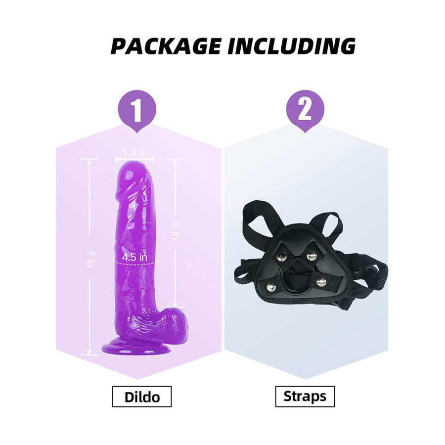 About this item【Strap on Dildo with Harness】Includes an adjustable strap and 7.2" Realistic dildo penis with extremely vividly glans raised vein texture. Also, you can use the dildo on its own or pair Harness with other dildos. This sex toy is suitable for gay, lesbian and couples.【Adjustable Harness】The strap on harness is made of PU leather and nylon. Convenient adjustable harness design, you can adjust the length of the harness at the waist and the crotch. Suitable for almost everyone. The snap fastener is removable and easy to use.【Metal O-Ring Design】There is a removable fixed metal ring to hold the dildo in place. The O-ring has a diameter of 1.77''/4.5cm, perfect for most skill levels and dildo sizes.【Strong Suction Cup】The strap on dildo has a strong suction cup base which can be applied to any hard surface, such as floor, chair, wall. So you can stick it to most smooth surfaces for hands-free fun if you are home alone.【Waterproof and Easy to Clean】This harness strap-on dildo is made of high-quality silicon, which is skin friendly body safe and waterproof. The harness dildo is easy to clean. Just use soap, warm water. You can apply lubricant before using it.Product DescriptionStrap on Dildo with Harness, Wearable Realistic Silicone Dildo Adult Sex Toy for Female Masturbation Women Lesbian Couples and GayProduct detailsPackage Dimensions : 8.11 x 4.02 x 2.8 inches; 12.31 Ounces