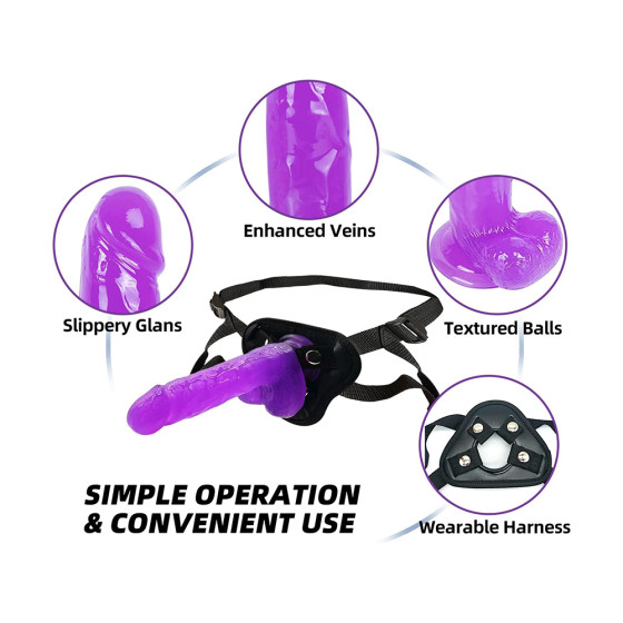 Gephonsi Purple Strap on Dildo with Harness
